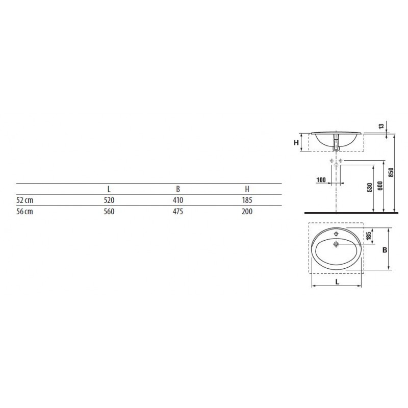 Jika IBON Umyvadlo zápustné 52 cm H8130100001041
