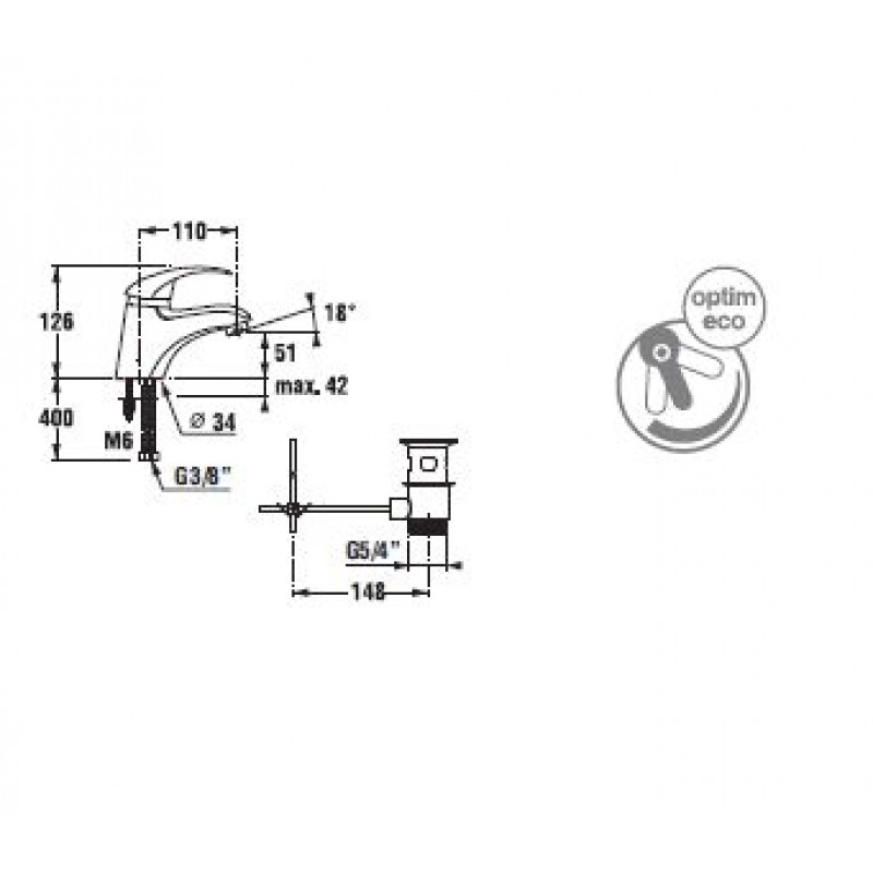 Jika LYRA Umyvadlová stojánková páková baterie bez automatické zátky, chromRozměry výrobku: