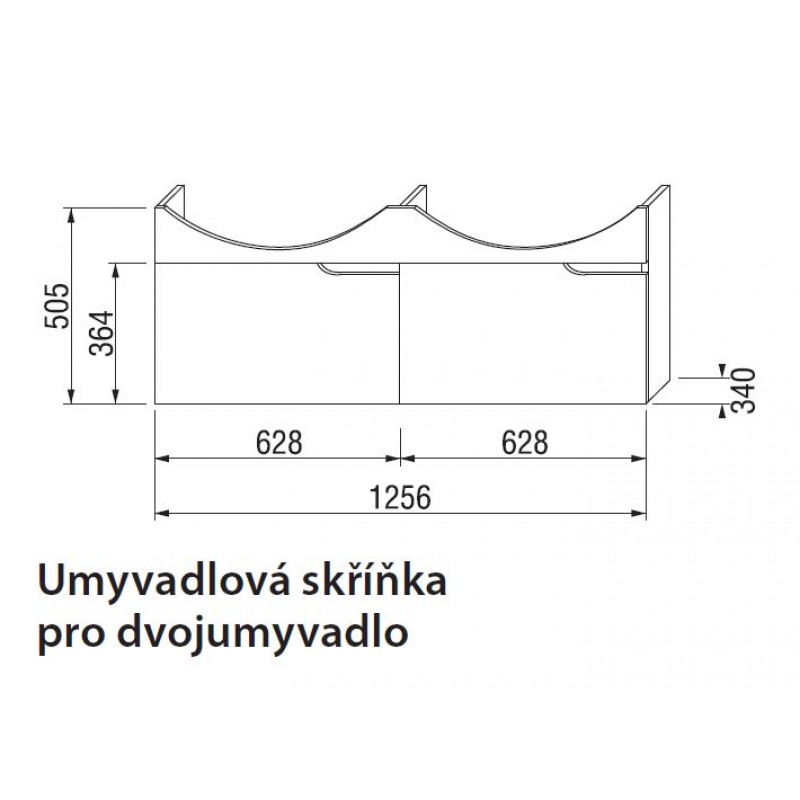 Jika MIO NEW skříňka pro nábytkové umyv. 130cm, 2 zásuvky bílá/ořechpro nábytkové dvojumyvadlo o rozměru 130 cm