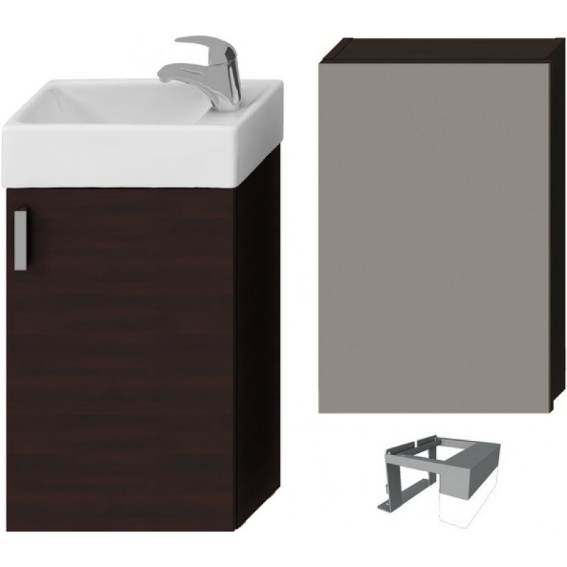 Jika PETIT Skříňka s 1 levo / pravými dveřmi, včetně umyvadla 40 x 23,5 cm, otvor pro baterii VPRAVO, zrcadlová skříňka a osvětlení, tmavý dubsada skříňky, umyvadla 40x23,5cm, zrcadlové skříňky a osvětlení