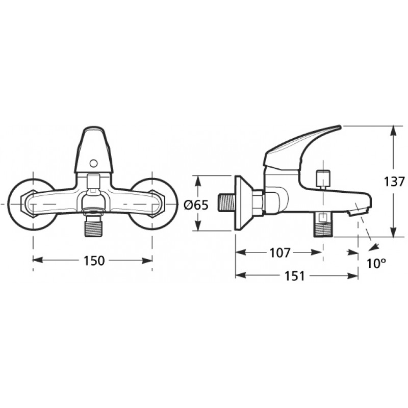 Jika TALAS Vanová páková baterie bez sprchové sady, rozteč 150 mm, chromRozměr výrobku:
