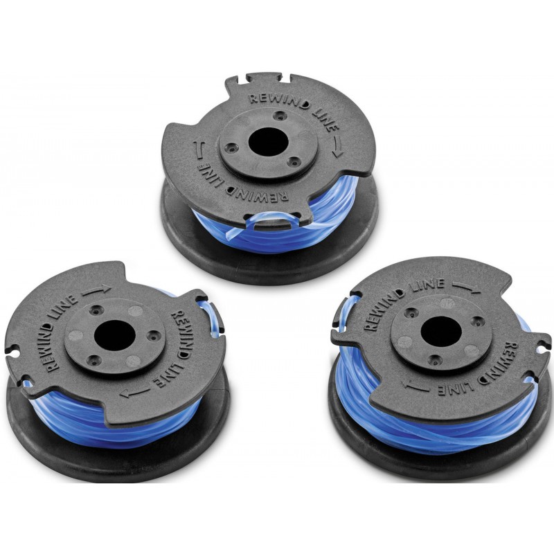 Cívka v balení po třech kusech s kroucenou strunou zabezpečuje čisté výsledky na špatně přístupných místech. Je vhodná pro všechny strunové sekačky 18 V Kärcher Battery Powe.