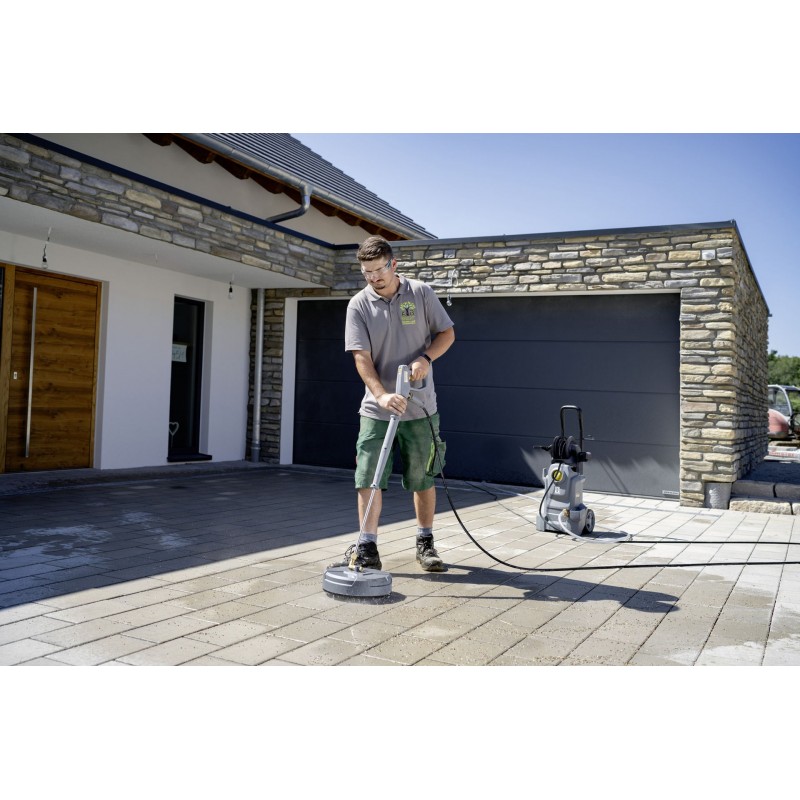 Model je vybaven 840 mm dlouhým nerezovým pracovním nástavcem, rotační tryskou pro odstranění odolných nečistot a navijákem hadice pro pohodlné skladování. Automatický systém uvolnění tlaku chrání vnitřní komponenty a snižuje náklady na údržbu.