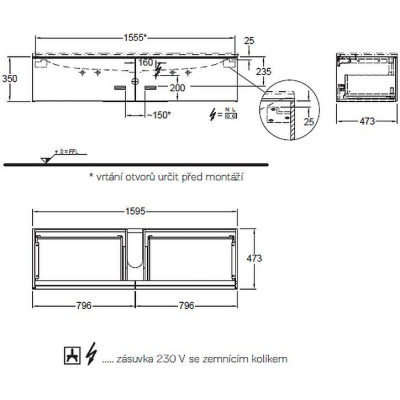 - 2 výsuvné zásuvky vč. LED osvětlení (max. 3 W, 3000 K, 225 lm, energetická třída