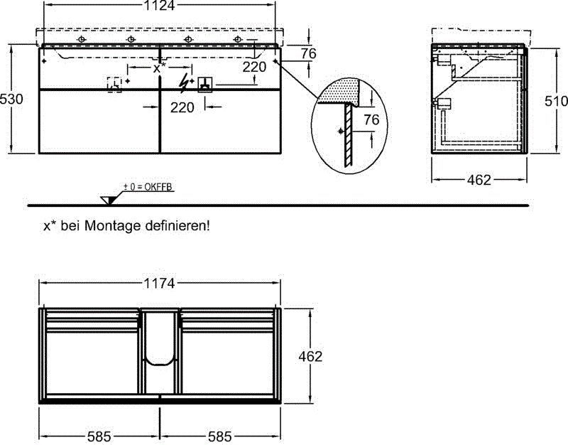 - kombinovatelná s umyvadly 127020000, 27023000, 127025000 a s vnitřními