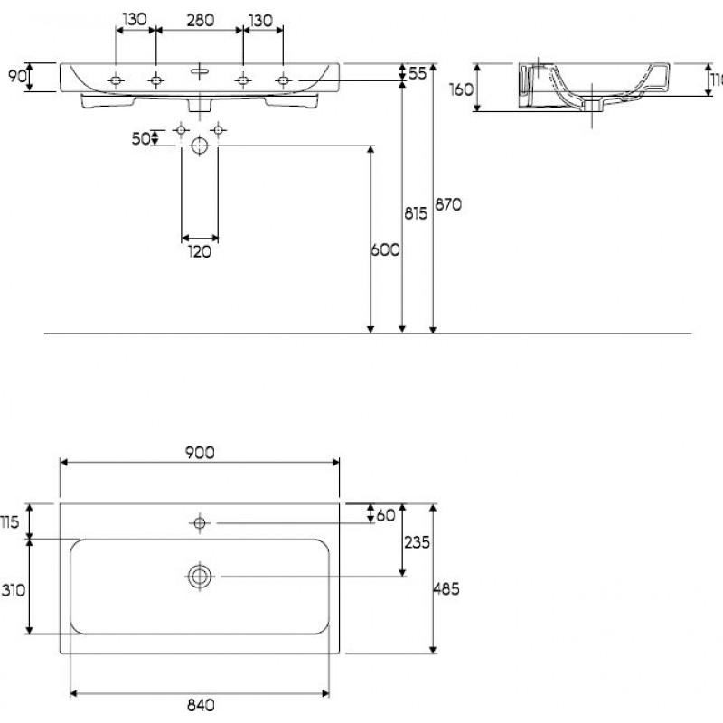 KERAMAG Icon umyvadlo 90 x 48,5 cm, s otvorem pro baterii, s přepadem, bílá 124090000umyvadlo 90 x 48,5 cm
