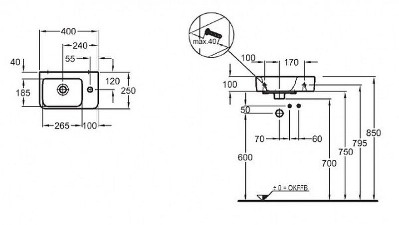 KERAMAG Ren.Nr.1.Comp.umývátko 40x25 s otv.vpravo 276140000- s přepadem