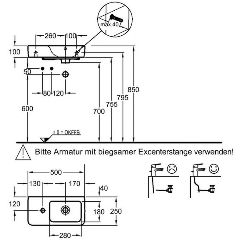KERAMAG Ren.Nr.1.Comp.umývátko 50 x 25, otv.vlevo KT 276350600