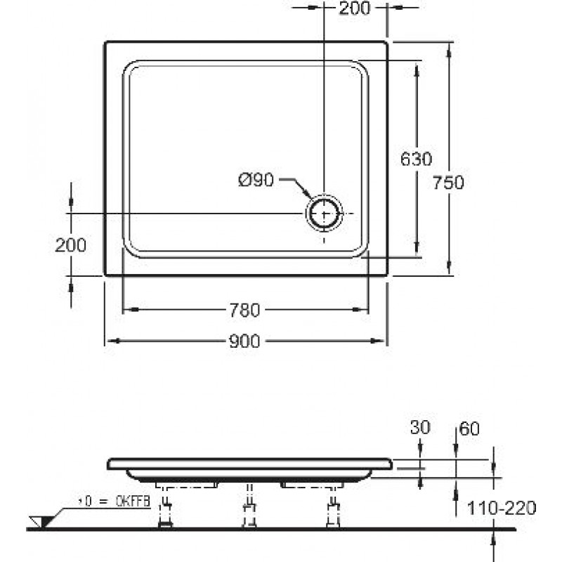 KERAMAG Renova Nr.1 sprchová vanička pravoúhlá 90 x 75 cm 652250000pravoúhlá sprchová vanička, bílá