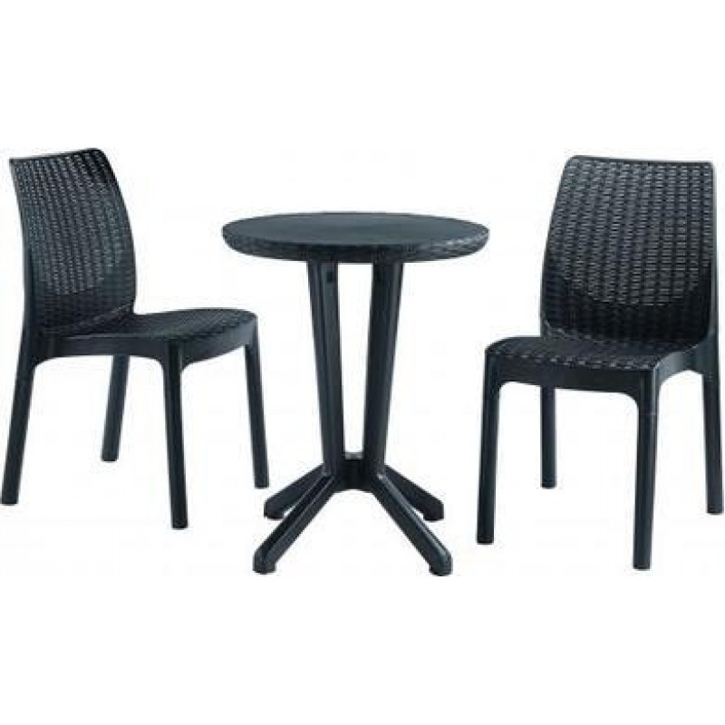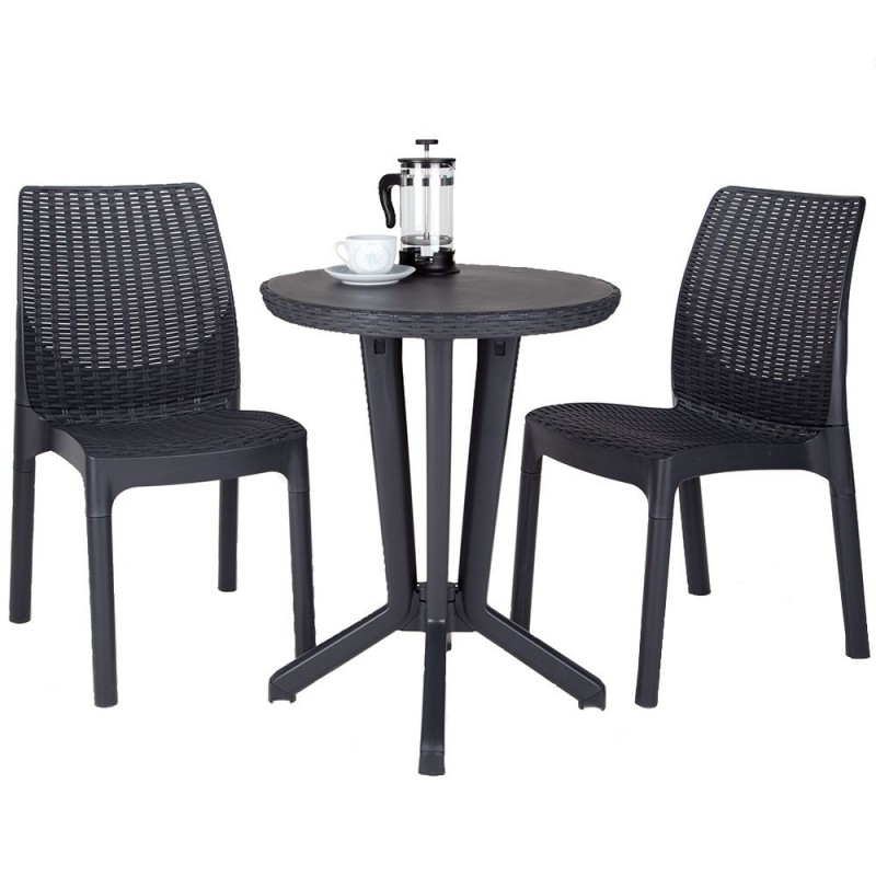 KETER BISTRO balkonový set, antracit 17197990Nábytkový set BISTRO je navržen s ohledem na pohodlí. Souprava se skládá ze dvou židlí a kulatého stolu. Nábytek perfektně vyplní malé prostory na balkoně, terase nebo i v zahradě. Tento produkt se vyznačuje vysokou životností a odolností vůči povětrnostním vlivům a UV záření. Čištění měkkým hadříkem vlažnou vodou se saponátem.