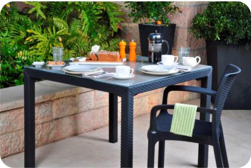 Zaujme především svým provedením - háčkovaná vazba. Židle je lehké a zároveň velmi stabilní.Tento produkt se vyznačuje vysokou životností a odolností vůči povětrnostním vlivům a UV záření. Čištění měkkým hadříkem vlažnou vodou se saponátem. Židle jsou stohovatelné.