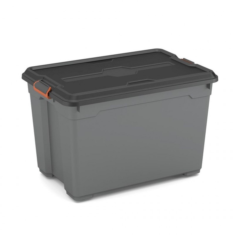 Úložný box vyrobený ze speciálního použitého materiálu pro extra velkou zátěž. Tento Moover Box Pro velikosti XL má objem 60 litrů. Box je opatřen víkem, které bezpečně uzavře box klipovým uzávěrem, má i rukojeti z gumy pro pohodlné a bezpečné uchopení. Další pomůckou jsou kolečka, pomocí kterých i plný box snadno přemístíte. Využijí jej i profesionálové.Moover box Pro v barevné kombinaci tmavě šedé a černého víka nejvíce využijete v dílně, garáži a jiných technických místnostech. Nicméně díky jeho skvělému designu jej můžete používat i na jiných místech. I u tohoto boxu jako je tomu u většiny výrobků Kis můžete boxy stohovat a skládat do sestav pro úsporu místa.