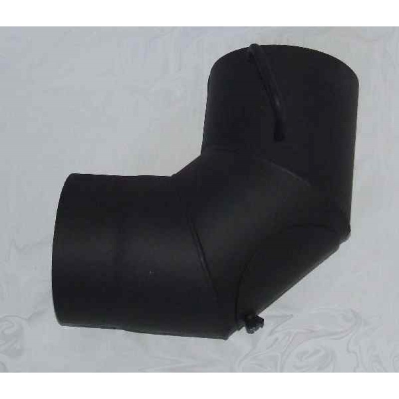 Koleno kouřovodu s čistícím otvorem a klapkou 150mm 90° (1,5) černáObrázky se mohou lišit od originálního produktu/položky.