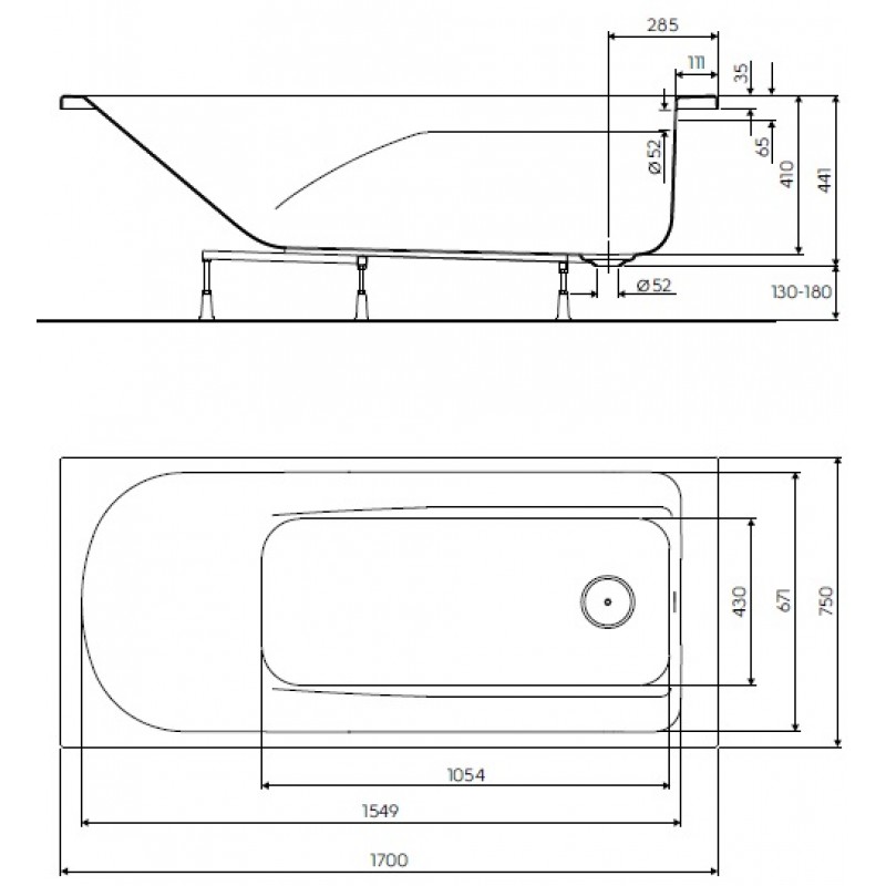 KOLO Comfort Plus pravoúhlá vana 170 x 75 cm, bez madel XWP1470 (XWP1470000)