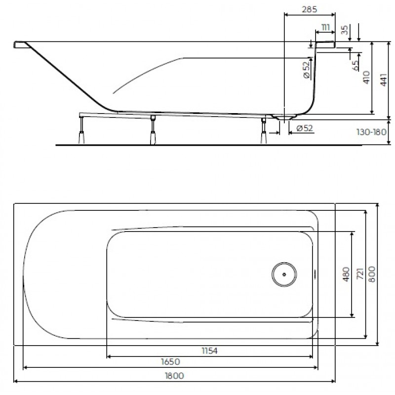 KOLO Comfort Plus pravoúhlá vana 180 x 80 cm, s madly XWP1481000