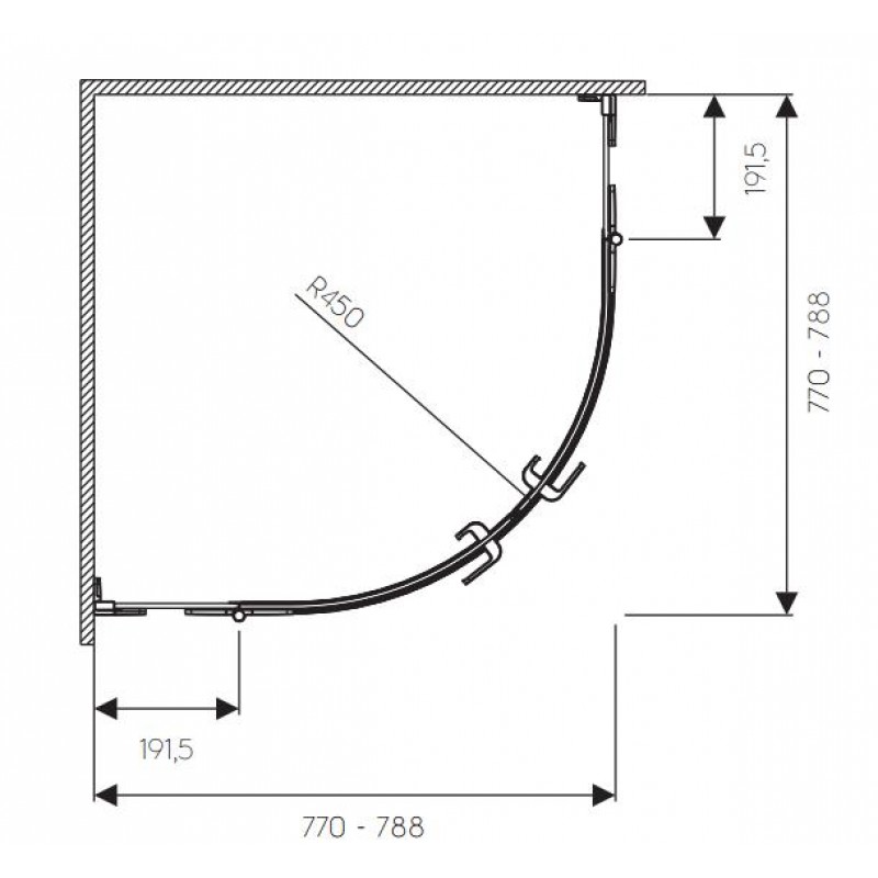 KOLO Next čtvrtkruhový kout 80 x 80 cm, křídlové dveře otvírané vně HKPF80222003Rozměrové možnosti: 770 - 788 mm