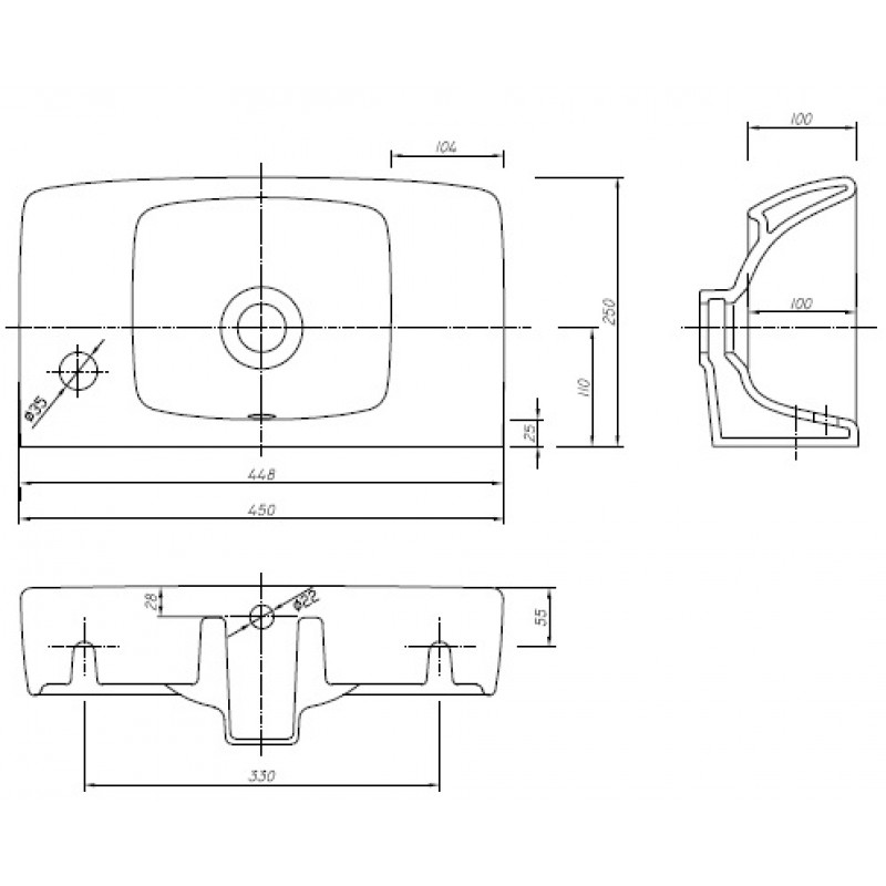 KOLO Nova Pro umývátko, pravoúhlé, 45 x 25 cm, s otvorem pro baterii vpravo, s přepadem M32247000- hloubka: 26 cm