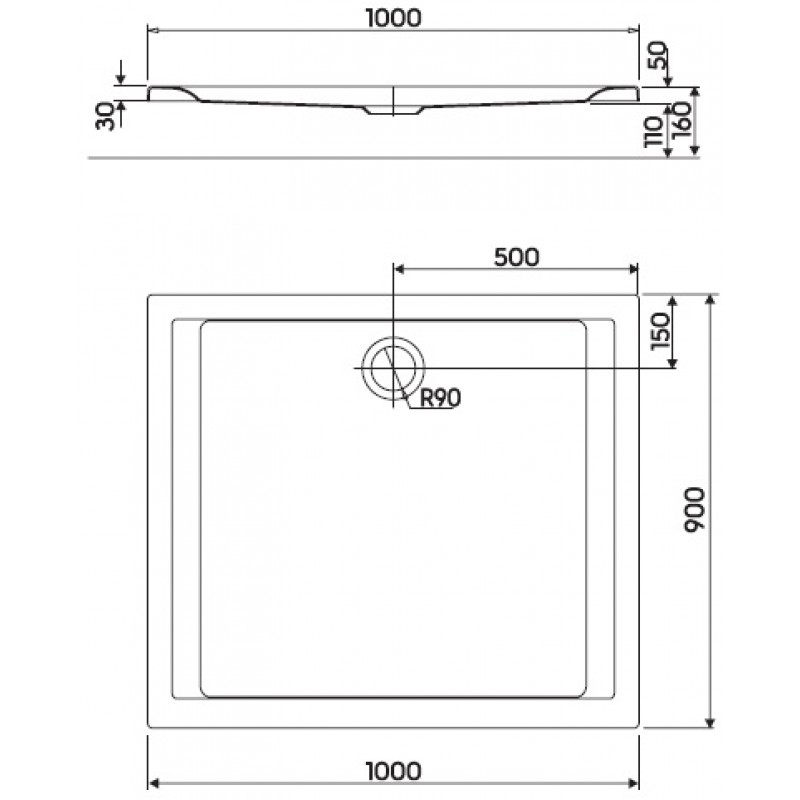 - odtok ( průměr ): 90 mm