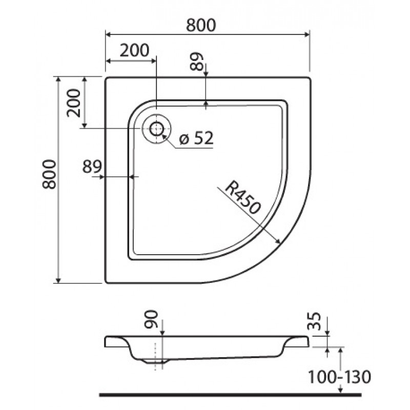 KOLO Standard Plus čtvrtkruhová sprchová vanička 80 x 80 cm XBN1580000- materiál: akrylát
