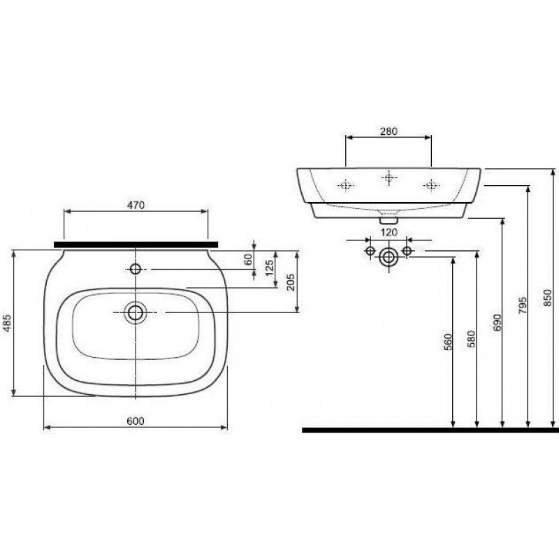 KOLO Varius umyvadlo pravoúhlé 60x48,5 cm s otvorem K31161Umyvadlo pravoúhlé 60 cm, 60 x 48,5 cm, s otvorem, s přepadem, pro kombinaci s polosloupem K37100.