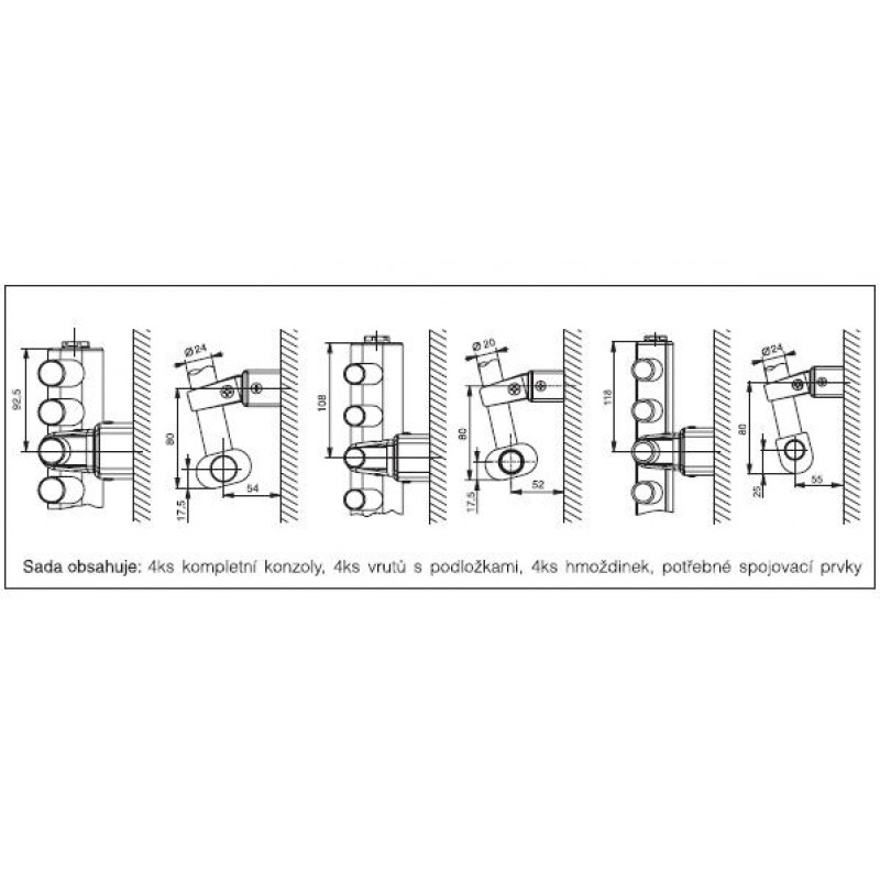 •dodává se sada stěnových konzol podle modelu otopného tělesa vždyve dvou barevnýchodstínech - bílá nebo chrom