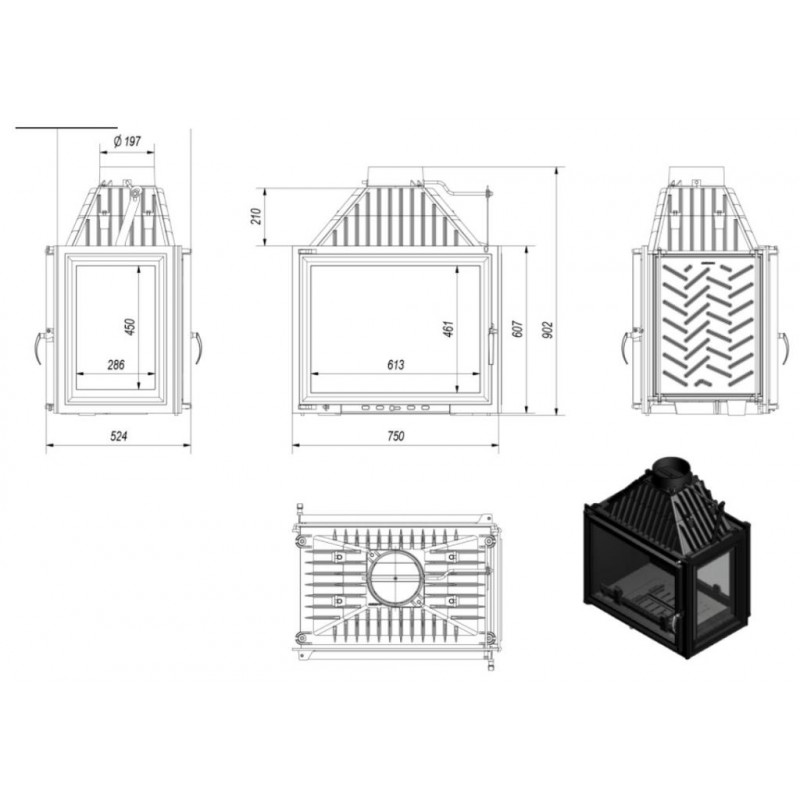 KRATKI AMELIA/LPT 25 kW krbová vložka teplovzdušná, průhledové pravé, levé skloVýkon: 25 kW
