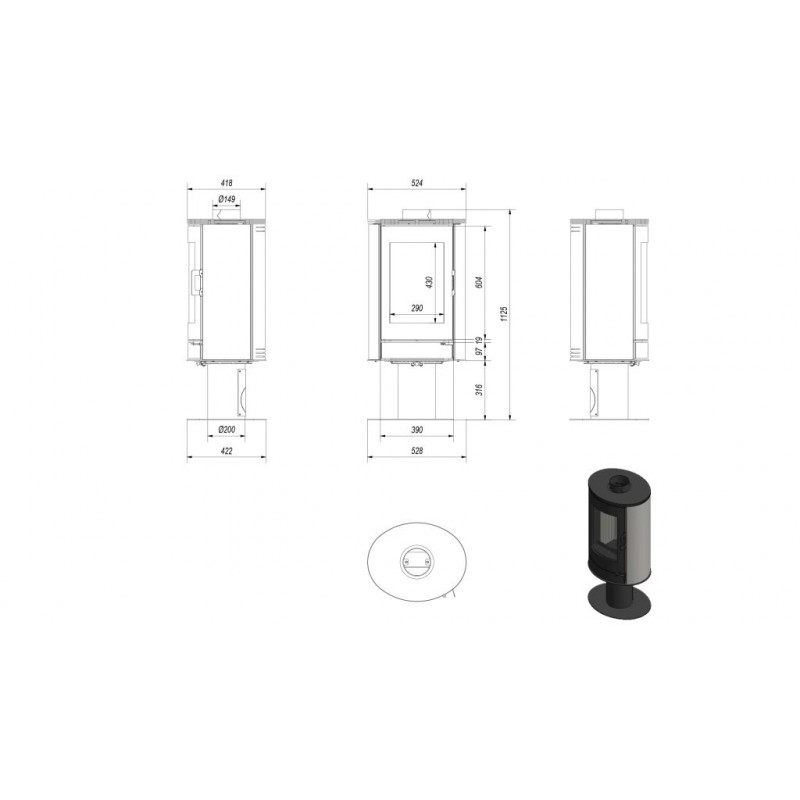 Průměr kouřovodu: 150 mm