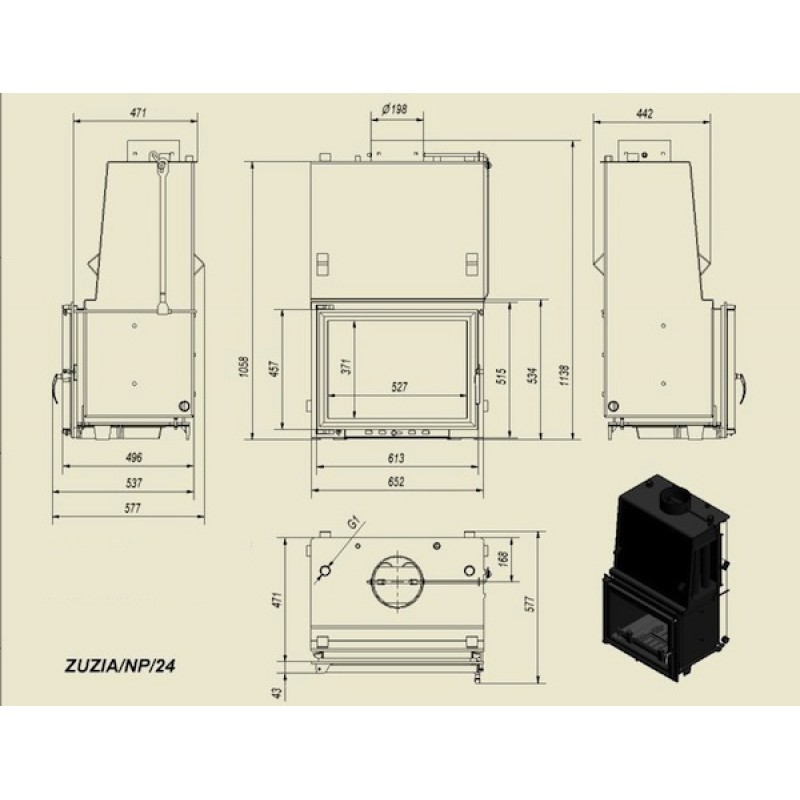 KRATKI ZUZIA/NP/R/W 24 kW krbová vložka teplovodní, obloukové sklo, s chladící smyčkouVýkon nominální: 24 kw