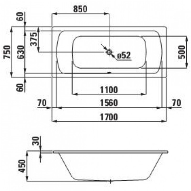 LAUFEN MODERNA Plus Ocelová vana 170 x 75 cm, bílá Anti Slip, 155 l, 2.2507.0.600.040.1- ocelová smaltovaná vana