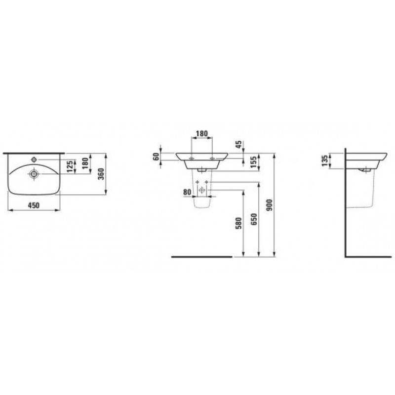 LAUFEN PALACE Umývátko 45x36, s otvorem, bílé MAT, 8.1570.1.757.104.1- 1 otvor pro baterii uprostřed
