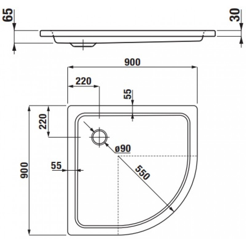 LAUFEN PLATINA Ocelová vanička čtvrtkruh, pol.550mm, 90x90cm, bílá, 2.1501.8.000.040.1- čtvrtkruh - poloměr 550 mm