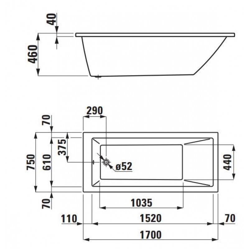LAUFEN PRO Vana akrylátová 170x75 cm, vestavná, 185 l, 2.3195.0.000.000.1LAUFEN PRO - Vana 170x70 cm