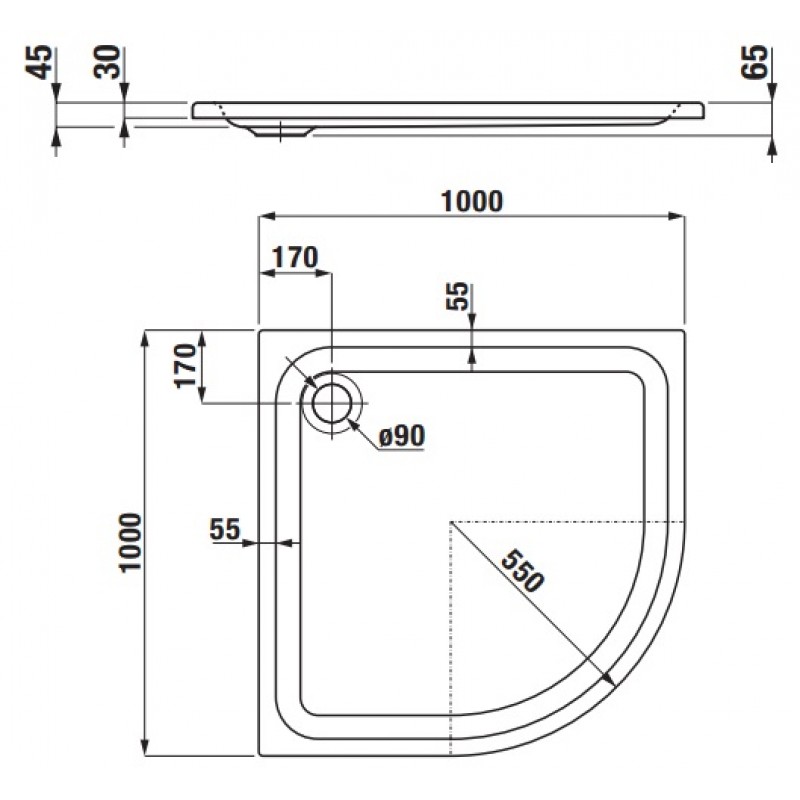 LAUFEN SOLUTIONS Akrylátová vanička čtvrtkruhová 100x100cm, bílá, 2.1350.3.000.000.1