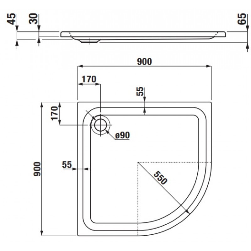 LAUFEN SOLUTIONS Akrylátová vanička čtvrtkruhová 90x90cm, bílá, 2.1350.2.000.000.1- akrylátová