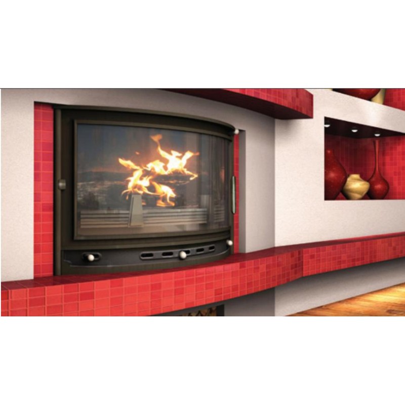 - Vzduch pro hoření může být z větší části přiveden z exteriéru pod krbovou vložku, kde se nasadí na přírubu. Ta je standardně součástí nabídky
