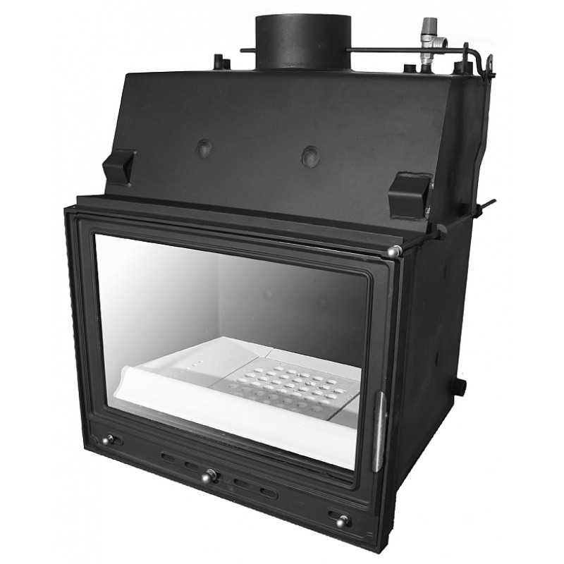 Vložka má zabudovanou komínovou klapku, ovládanou táhlem nad dvířky. V ceně je i přívod externího vzduchu – redukce, kterou si v případě zájmu namontujete na popelník, a flexi hadicí o průměru 100 mm dovezete vzduch zvenčí. Přívod externího vzduchu vždy regulujte klapkou ovládanou táhlem nebo automatickou regulací přívodu externího vzduchu ( viz.související zboží). Dvířka jsou z litiny a vysoce žáruvzdorného skla. Popelník lze vyjmout po otevření dvířek. Panty dvířek jsou vždy vlevo.