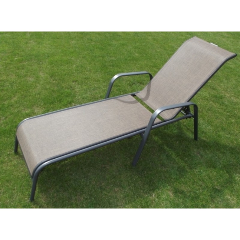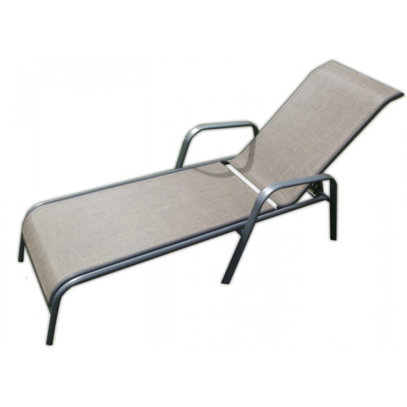 Polohovací lehátko se stabilní kovovou kostrou šedé barvy. Sedák a opěrná plocha je z textilie. Lehátko je polohovatelné. Je vhodné na zahrady i terasy.Kovové lehátko polohovací s textilií 2x1