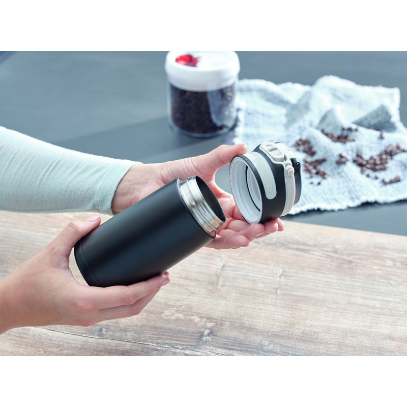 Termoska s šikovným uzávěrem o objemu 350 ml v barvě černé značky Leifheit.