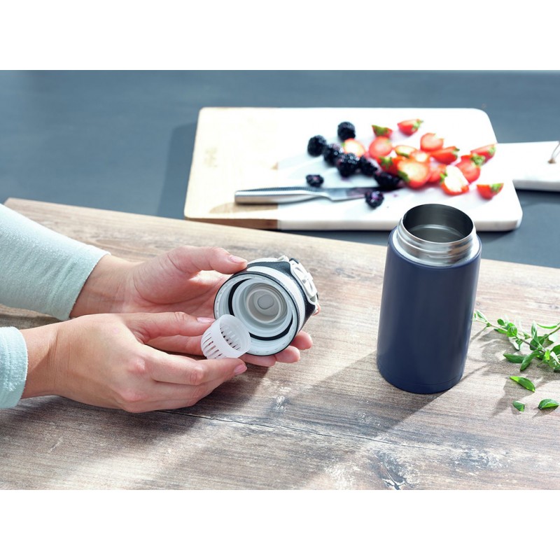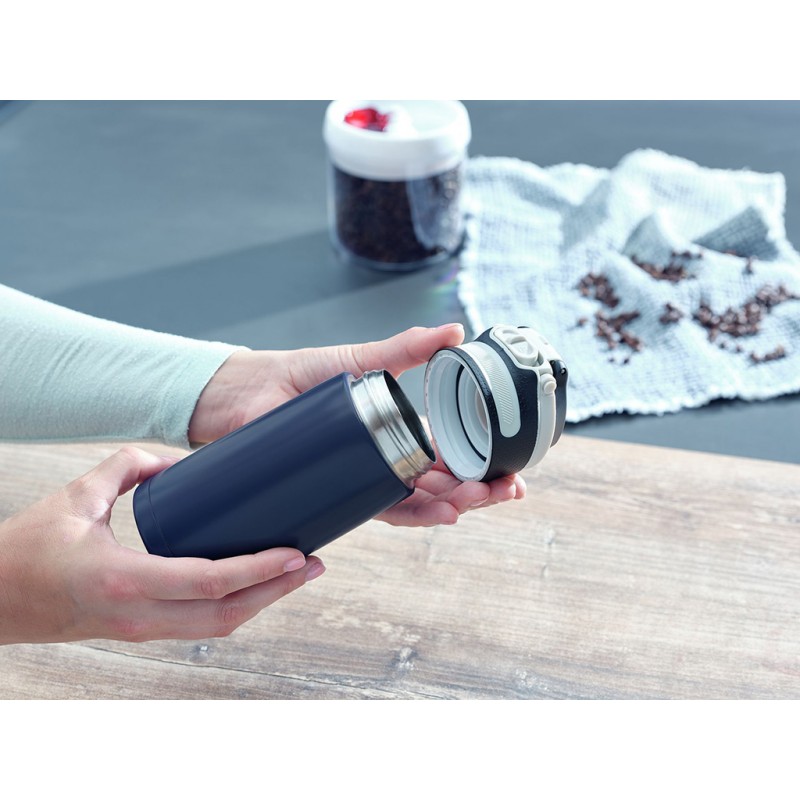 Termoska s šikovným uzávěrem o objemu 350 ml v barvě tmavě modré značky Leifheit.