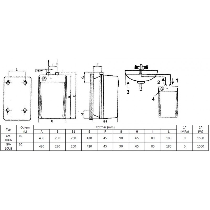 LEOV 10 l elektrický ohřívač vody, 10 l, dolní zapojení, LEOV10DOWN