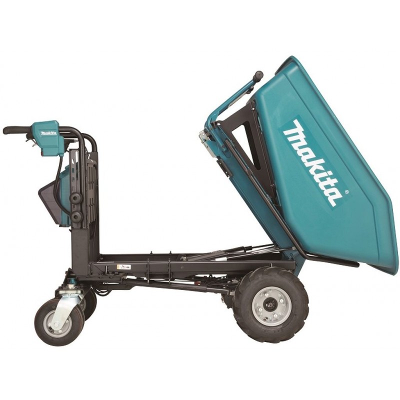MAKITA DCU602Z Aku přepravní vozík je robustní a výkonný pomocník určený pro transport těžkých břemen na stavbách, v zahradnictví, zemědělství i komunálních službách. Pohon zajišťují dva akumulátory Li-ion LXT 18V s možností použití až čtyř akumulátorů, což výrazně prodlužuje pracovní dobu. Speciální bezuhlíkový motor v kombinaci s technologií XPT umožňuje spolehlivý provoz i v prostředí se zvýšenou prašností nebo vlhkostí. Maximální přepravní kapacita vozíku činí 300 kg, přičemž součástí dodávky je plastová korba o objemu 200 litrů pro pevné látky nebo 100 litrů pro kapaliny.