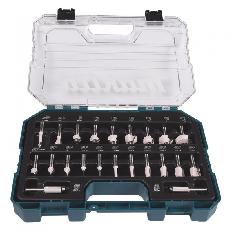 MAKITA D-74778 Sada fréz po zanořovací a jednoruční frézky 8 mm, 22 ks, v plastovém kufru