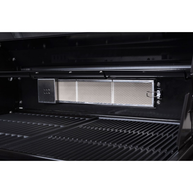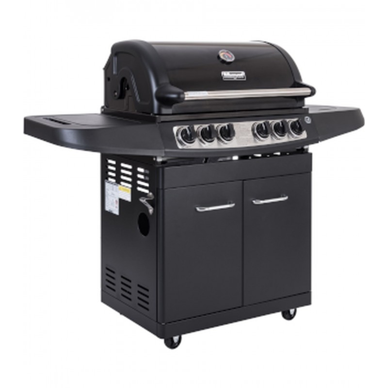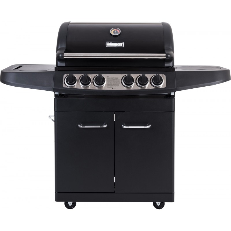 Základem grilu jsou 4 vysoce kvalitní plynové hořáky z ušlechtilé oceli č. 304. Integrované zapalování odvádí spolehlivě svojí práci. Díky poklopu vybavenému teploměrem a skleněným okénkem můžete přípravu vašich pokrmů kdykoliv kontrolovat. Rošt i grilovací tál jsou opatřeny smaltovanou povrchovou úpravou, která zaručuje velmi dlouhou životnost. Na pravé straně grilu se nachází přídavný hořák, vhodný pro přípravu omáček nebo udržení hotových pokrmů v ideální teplotě. Na levé straně potom najdeme praktický odkládací prostor. Plynová láhev je uzavřena ve spodní skříňce. Transport grilu výrazně ulehčí pojezdová kolečka s možností aretace.