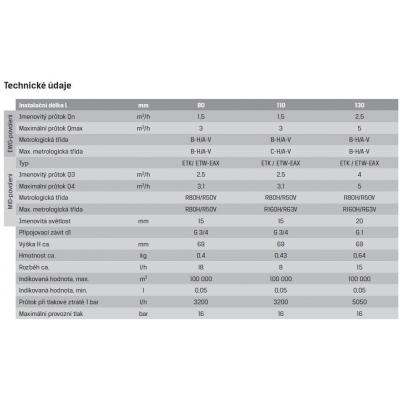 Bytové vodoměry Typ ETK/ETW-Modularis
