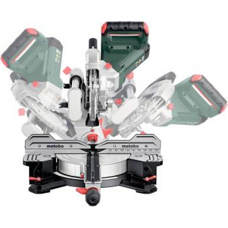 - Maximální flexibilita – oboustranně otočný stůl a oboustranně naklápěná pilová hlava.
