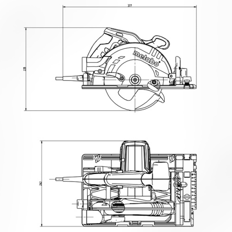 - Robustní ruční okružní pila, kterou lze nasadit přímo na vodicí lišty Metabo a lišty jiných výrobců- Lehká vodicí deska z hliníkového tlakového odlitku