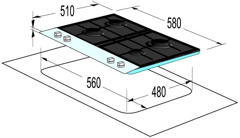 MORA VDP 645 GX Vestavná plynová skleněná deska- 4 plynové horáky s pojistkami STOP GAS