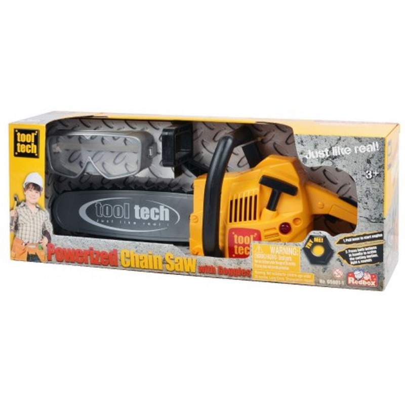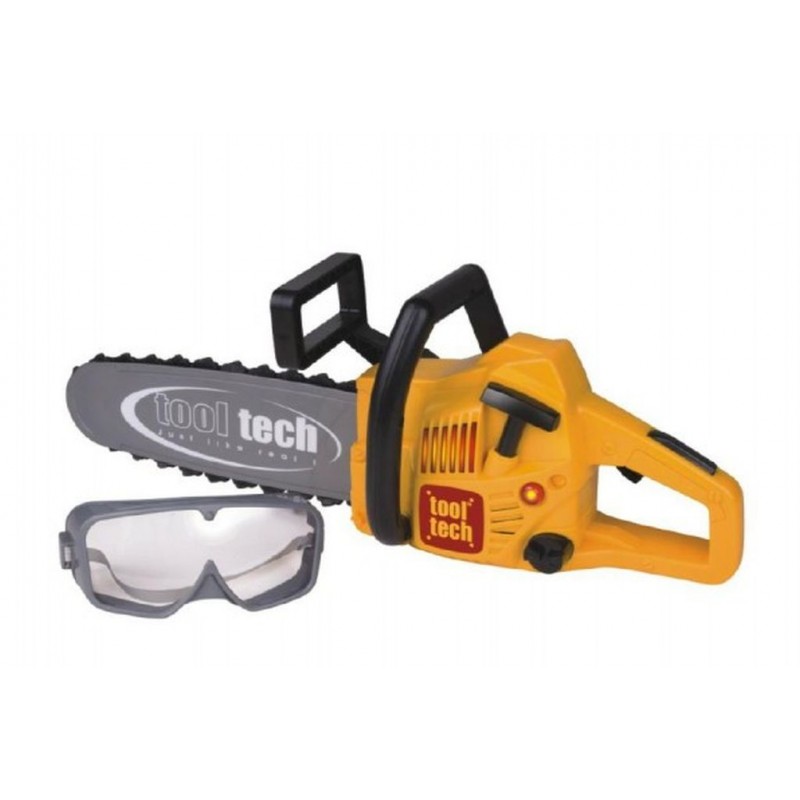 Motorová řetězová pila by neměla chybět žádnému malému kutilovy. Startuje se zatažením za páku a po zmáčknutí tlačítek na rukojeti se začne otáčet řetěz. Vydává zvuk a svítí jako opravdová. U pily nechybí ani ochranné brýle. baterie 3xAA, v krabici• Materiál: plast