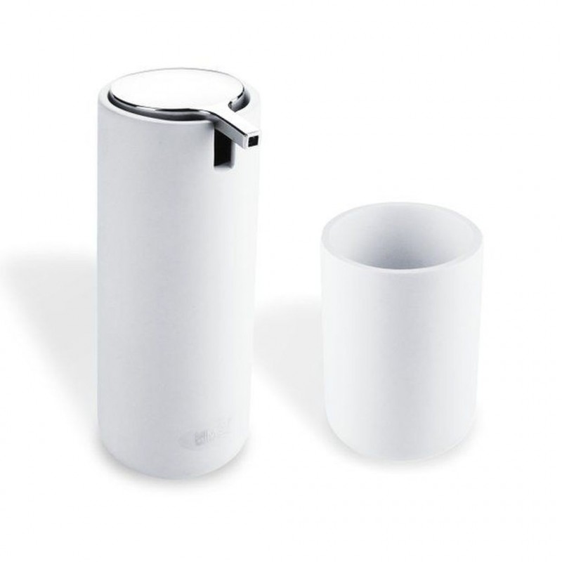 NIMCO OMI dávkovač tekutého mýdla a pohárek bílý OM1605831-05Set s dávkovačem na tekuté mýdlo a pohárek na kartáčky