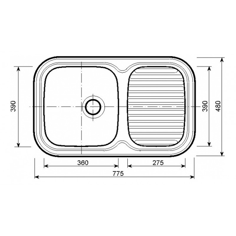 Velikost dřezu: 775 × 480 × 160 mm